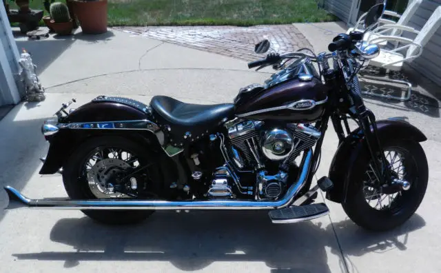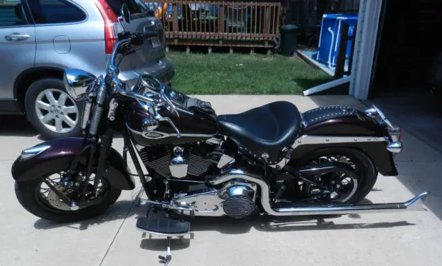 Well maintained Black Cherry 2005 HD FL Springer. I am listing this bike for my neighbor, ho is the second owner. He purchased it from Kutter HD in Janesville WI. All service work, ncluding Dyno's, as been performed by Kutter, xcept for fluid changes, hich my neighbor did annually.