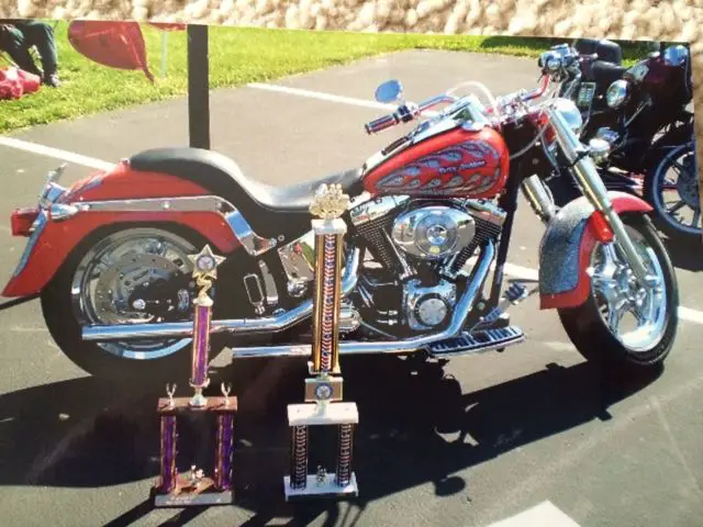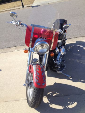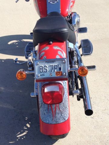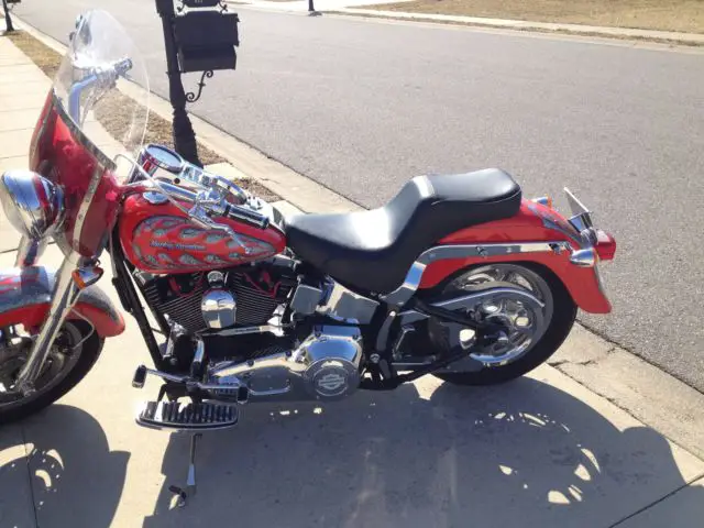 2002 FLSTF Fay Boy with a Custom Radical HD Paint job. Numbered 25 of 150 Garaged and Professionally Maintained Only 2 owners Front and Rear Lowered Vance & Hines Pipes S.E Download and Air Cleaner Badlander Seat and 1 additional custom seat included Custom mirrors, rips and handlebars with the wiring inside Custom Chrome includes: Wheels and Levers Lower Fork Legs Cowbells Axle Covers Dash Panel Rocker Covers Pivot Bolt Covers Master Cylinder Shifter Linkage Belt Guards Pulley Cover Custom Floorboards, oot pegs and shifter pegs
