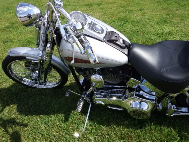 Selling one of my all time favorite bikes. New Indian and the springer is now a trailer queen.Original owner spared no expense in upgrading this bike to almost show condition. Some of it's manyaccessories include true chrome swing arm, hrome axle covers, euce rear wheel, rogressivelowering shocks, erby and timing cover, ance & Hines staggered exhaust, ntegrated turn signalsand running lights in mirrors, raided stainless cables and windshield. She is fuel injected and runsgreat. I have the original rear wire wheel that goes with the bike.