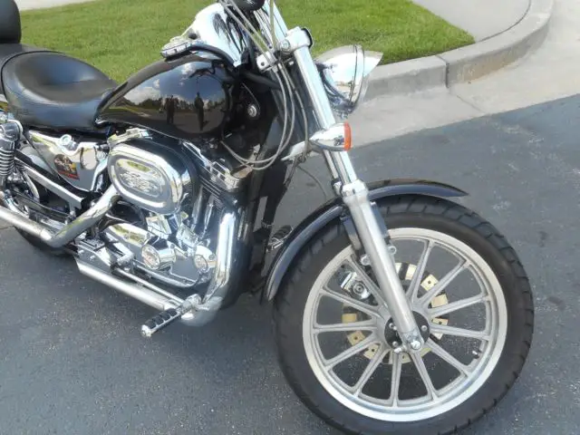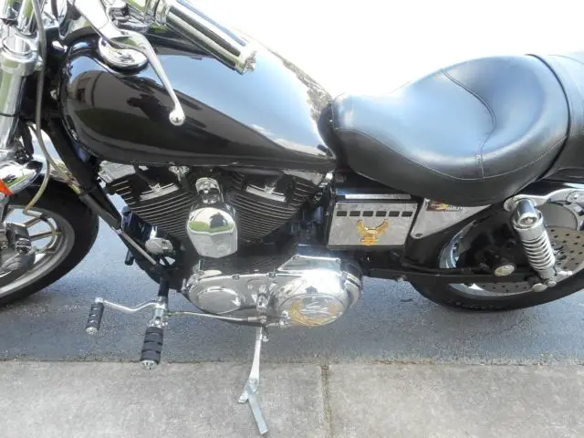 1996 SPORTSTER 1200 CUSTOM BLACK. BIKE HAS 23,217 MILES. RUNS AND SOUNDS GOOD WITH DRAG PIPES. PIPES HAVE SURFACE RUST WHERE NO HEAT SHIELDS COVER THAT PART OF THE PIPE. BIKE HAS CHROME SWITCH HOUSING KIT AND BRADIED CABLES. FUEL CAPS,MIRRORS, IMMING COVER, EADLIGHT VISOR AND DERBY COVER HAVE LIVE TO RIDE LOGO COLLECTION. BIKE HAS A SISSY BAR AND PAD. SISSY BAR PAD PLATE HAS GOLD EAGLE LOGO AS WELL AS THE CHROME BATTERY COVER. TOURNING STYLE SEAT WITH SOME WEAR. FRONT AND REAR TIRE IN VERY GOOD CONDITION. CHROME BELT GUARD. SOLID REAR WHEEL.