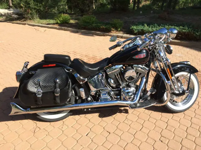 Up for auction is a 2002 H-D Softail Heritage Springer in excellent running condition! The bike has a couple minor scratches in the clear coat with some paint chips on the front fender that were professionally repaired. Otherwise, he bike is nearly pristine with NO dents or rust. Always garage kept and regularly scheduled maintenance performed by local H-D dealership. Recently performed 25,000 mile service with new front and rear tires installed.