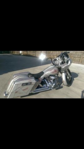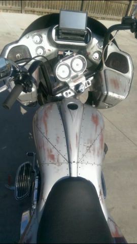 2010 Harley davidson road glide, 6ci engine 6speedBike is painted custom silver to resemble a P-51 fighter **must see** all custom paint and airbrush by Anton customs26" black performance machine wheel 26" fat front fenderHHI rake kit for 26" wheelPaul yaffe yaxle HD chrome forksHells foundry adjustable fairing mountCamtech custom chin spoilerDennis Kirk chrome windshieldHarley 14" chubby handle bars with all internal wiring and Paul yaffe mirrorsAlpine type s speakers Kenwood in Dash tv DVD playerStretched gas tank and center console with Dennis Kirk flush mount gas capHD custom solo seat also comes with a 2 up seat for the ladyAndrews cams Vance and Hines 2 into 1 exhaust screaming eagle ram air cleanerHD CVO DRIVER FLOOR BOARDS CVO street glide passenger boardsStretched tank matching side panels (complete panel)Arlen Ness stretched single exhaust bags, ess extended rear fender with frenched in LED tail lightsAir ride rear suspension. It'll cruise at 100mph all day long with no shakes, obbles, tc