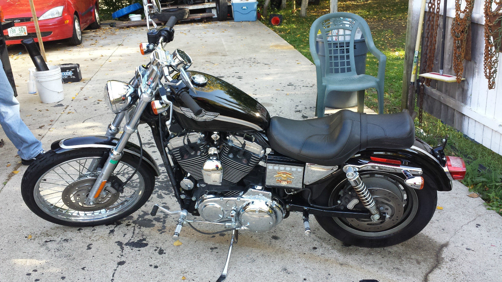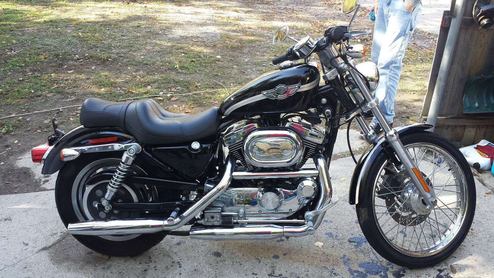 For sale is a 2003 Harley Davidson Sportster 1200cc. 100th Year Anniversary edition just finished up a $1000 service at the dealer. tune up. oil change. new battery. etc. Runs fantastic. garage kept. Super clean with only 4. 52 miles on it. it is an anniversary bike this sportster ride nice and come with custom parts as you can see in the pic. low starting price. well maintain and just tuned up