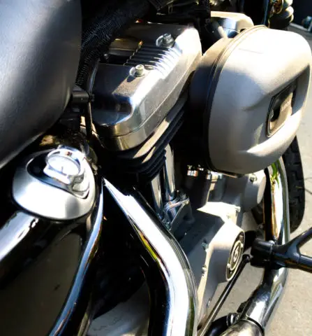 Add ons include:Extended forward controlsHarley 12 inch "ape" handle barsTwo up Harley seat (stock solo seat included)Detachable backrestSilencer style grips and pegs.