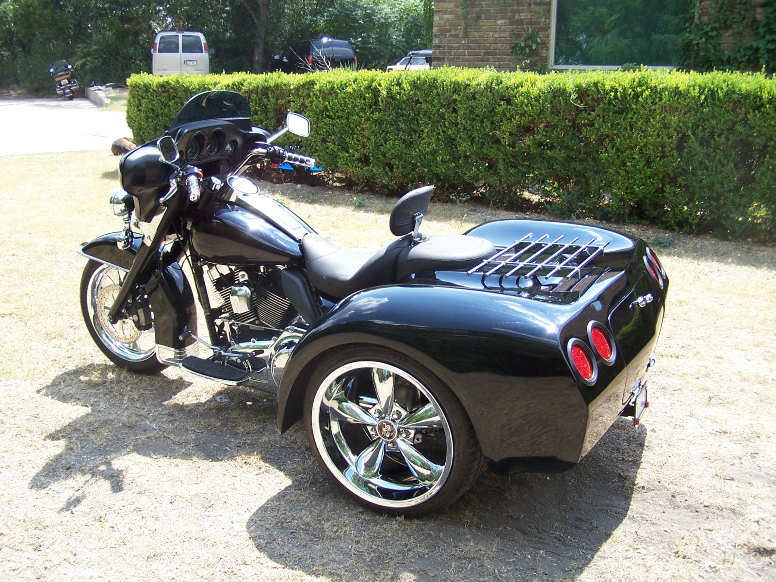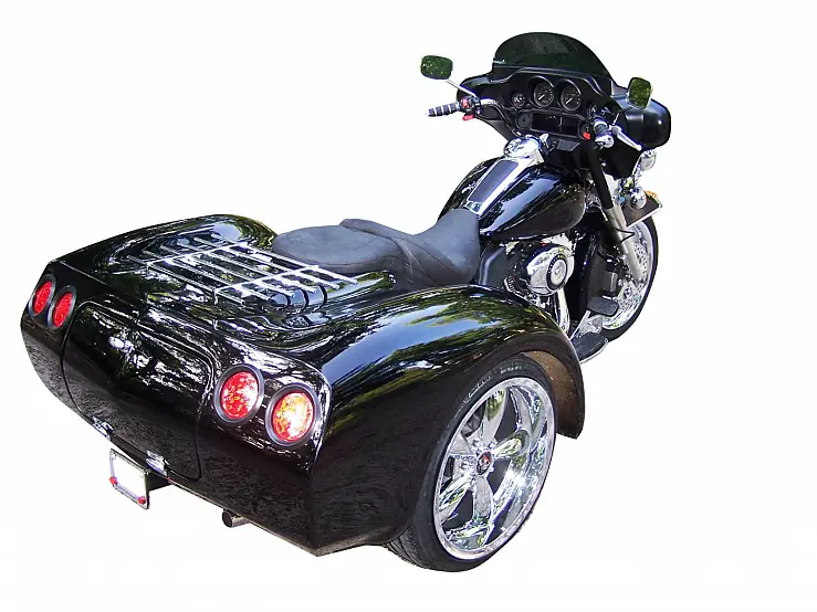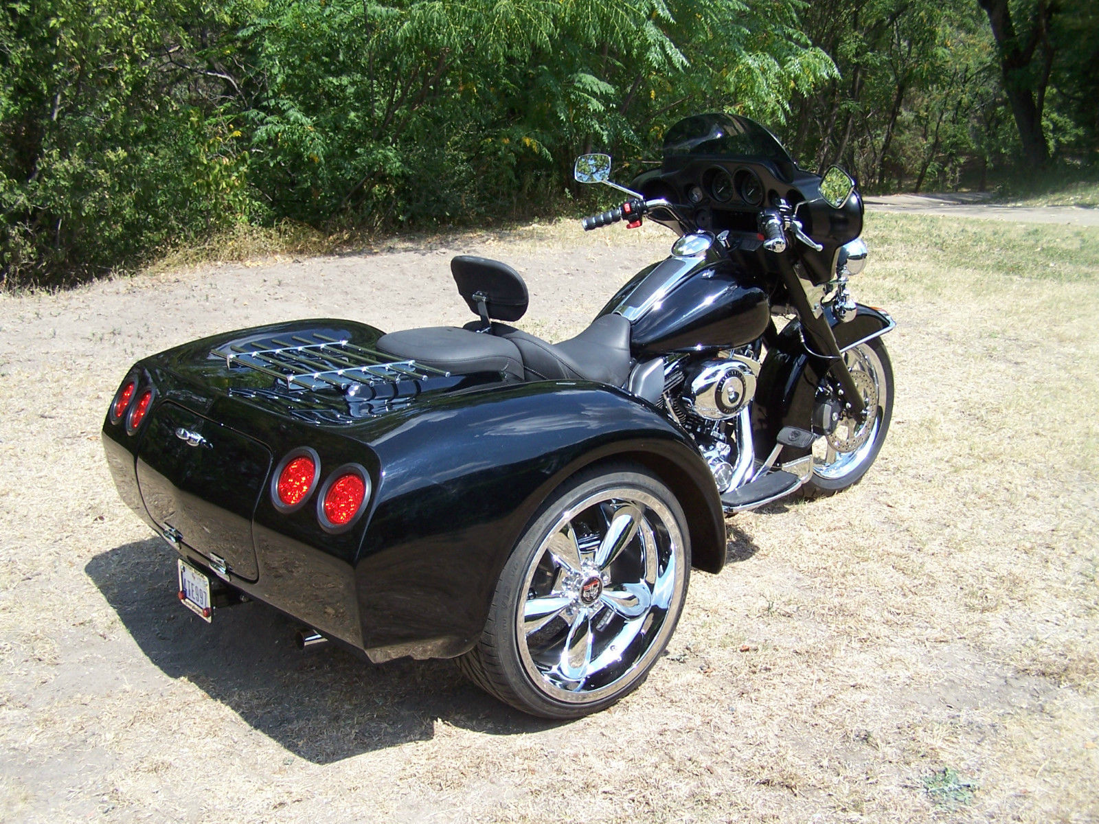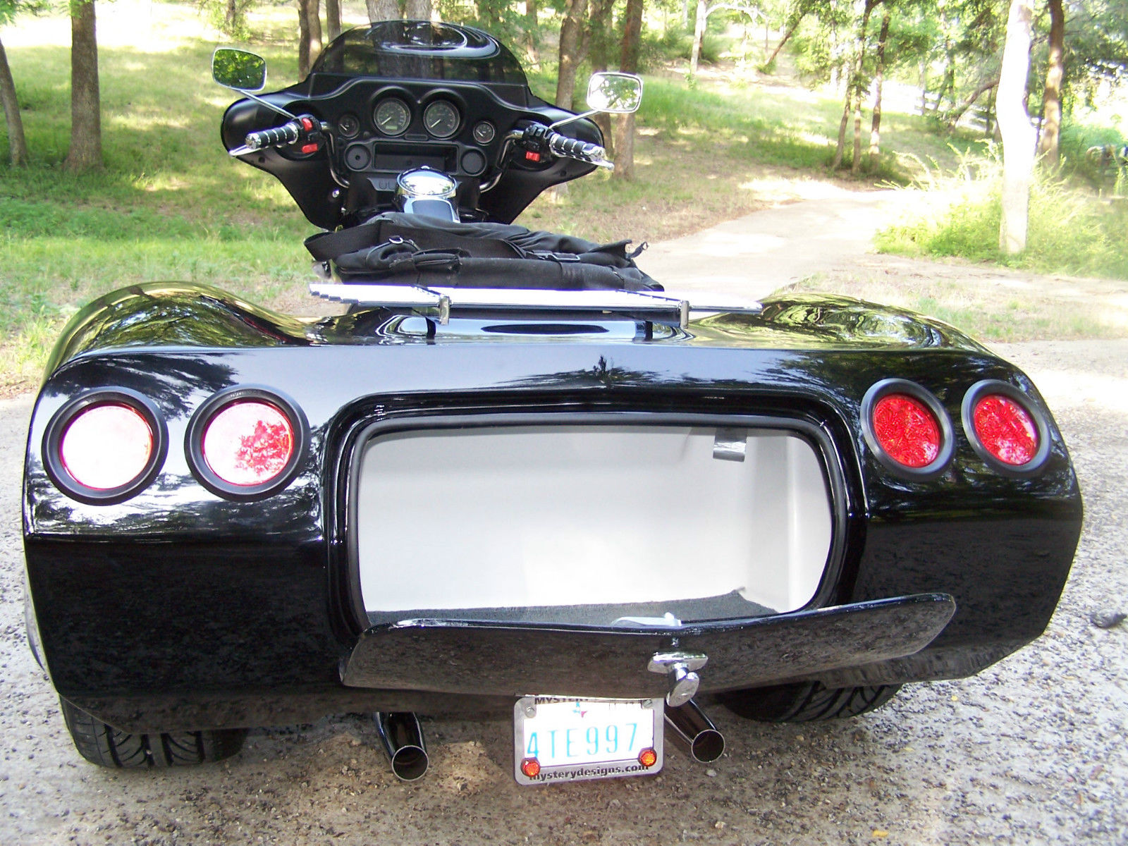 You are looking at a low mileage. 7600. FLHP that has been converted to a trike. using a Mystery Designs Independent Suspension System. It is a well handling and riding trike. Â With the ISS. you are always in control of your ride. It has Mystery Designs FLH. 7 degree raked trees. The raked trees allow for easier steering. both on the highway and through the corners. The body is the MD. X Body. with huge storage inside the body. The storage goes from side to side and is 20+ inches deep. Â