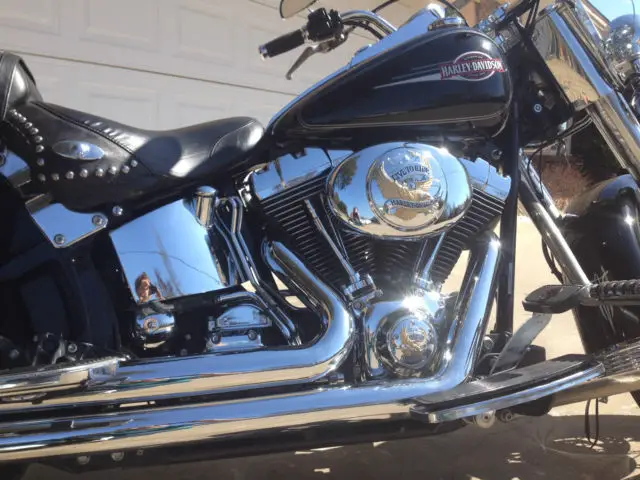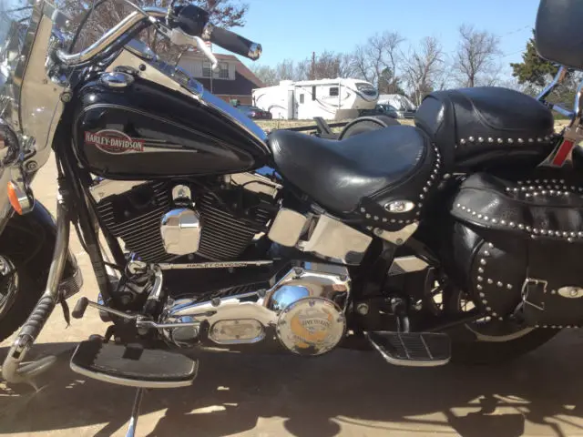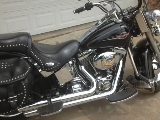 Upgrades and Features include: * Vance & Hines Pipes - loud * Rider & Passenger foot boards * Chrome luggage rack * * Live to Ride Eagle ThemeParts on - both mirrors, as cap, ide/derby covers, icense plate frame* StuddedLeather Concho HD Seat * Fender BibsThe bike is perfect...runs awesome. I would put it up against any out there and not hesitate to ride it across country!You will not be disappointed, t looks even better in person! The only thing this bike could use is new bags, hey are fine and function properly, ut have some of the sag (not bad though) that these bags get.Mileage will increase slightly as I ride it to keep it perfect! Pick up only.Shoppers...trust my 100% perfect Ebay Score. This is the best Heritage out there for the price...in my opinion.Selling only because I'm moving to a waterside local and willswitchmy "toy" to a boat.