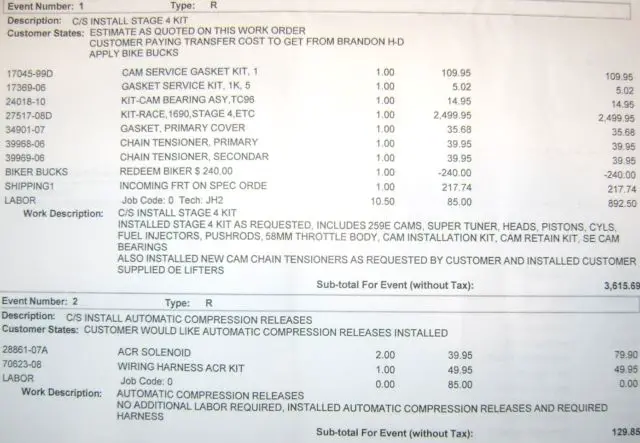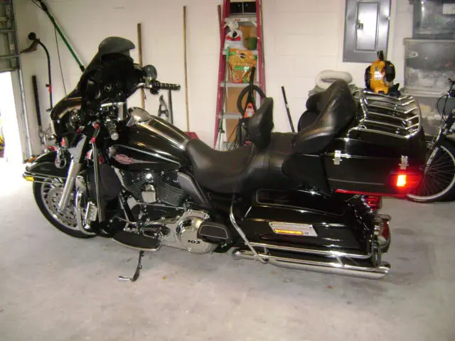 This bike has had extensive Engine and Transmission work done to it.In June of 2013 I had aScreaming eagle 103 stage 4kit installed, his was the Race kitthat comes with the high volume fuel injectors, 8 mm throttle body and SE Super tuner. I also had the latest versionScreaming Eagle lifters, he ones with the larger bearings madefor the high lift, hort duration camshaft recommended by thedealer. I also had SE Adjustable pushrods, SE Roller rocker arms, arley Davidson Automatic compression releases and aHarley Davidson Oil cooler. Coupled with a thermallyswitched oil cooler fan, o help keep the engine cool.Dynojet Performance Evaluation reported at 106.62 HP and 108.24 Torque.I have the report and most all the receipts. All work done by my local Harley Davidson dealer.Also inJune of 2013I had it the transmission rebuilt, ew bearings, ushings, askets. Since the primary was apart I went ahead and had a new clutch hub and bearings,A new Barnett clutch and pressure plate along with new seals and gaskets.The bike also has Factory Cruise control, An IPod bracket and extra electric outlet on inter fairing. This bike is basically an Ultra Classic without the Intercom or CB. Pretty much anything I thought would give me an issueon the bike was replaced.- 3x HogTunes Amps.
