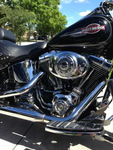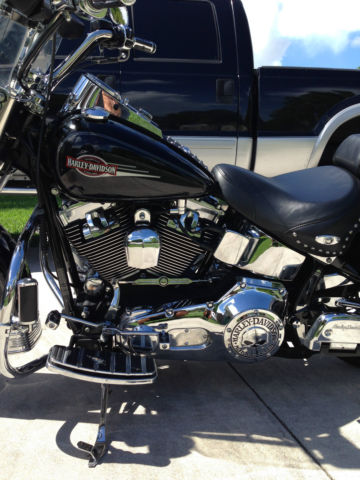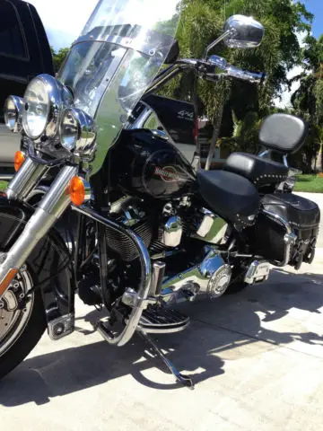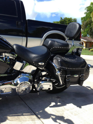 2005 Heritage Softail with 32000 old man drivenhighway miles!! Very low reserve as I am selling cause ofdivorce.This bike has a clear title. I boughtthis bike from the local Harley dealer in Miami and its been always serviced there. All upgrades have been done by them as well. 1450cc twincam balanced engine (zero vibrations), speed transmission, uel Injected, pgraded Screaming Eagle exhaust, tage one Kit, verything on the bike that can be is chromed out!!