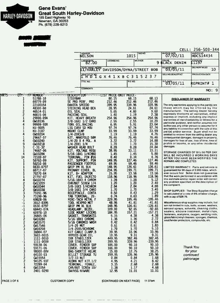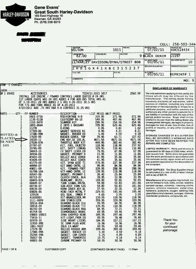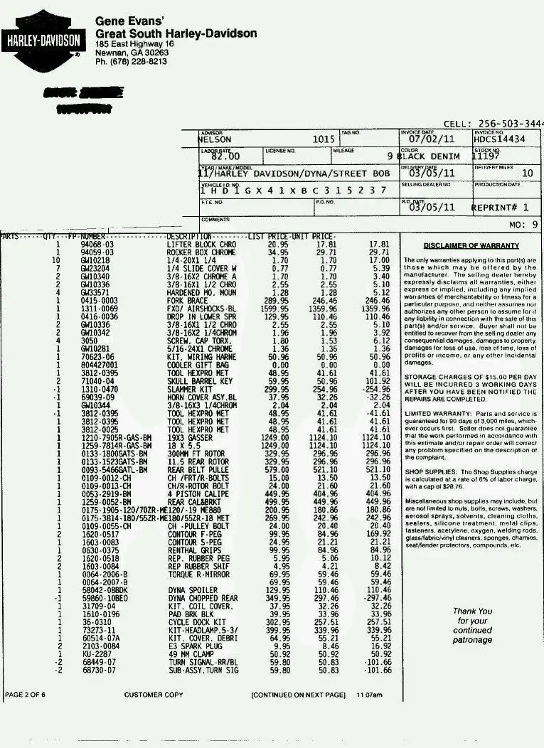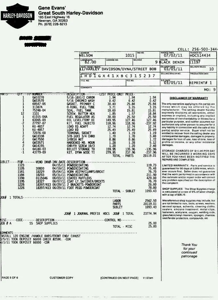 For sale a custom 2011 Harley Davidson Street Bob 2013 103" motor Frame approx 3000 miles. Motor approx 2000 miles. So many custom parts and paint on this bike too much to list please read the build sheet attachments. Custom la Para stingray seat with passenger pillion. Air shocks. Roland Sands apes. Photo of black Street Bob is what this bike looked like brand new from the dealer. Buyer will be responsible for shipment to anywhere in the United States. Thank you for looking.