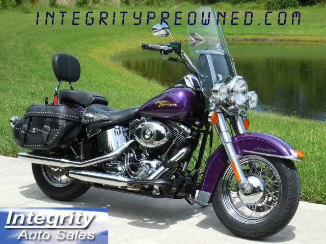 Thanks for checking out this really nice 2008 Harley Davidson Heritage Softail Classic with 11k actual miles. This bike has been regularly maintained and I have all the keys and manuals for the bike as well as the service manual. This was a custom color in 2008 and the Purple metallic looks awesome and has lots of metallic with various colors in it. This bike has the 96ci Vtwin and a 6 speed transmission and it is completely stock and it runs as good as a new one. It has some nice grips and an inner windshield pouch as well. This is a 1 owner bike and it was just traded in for a new Trike. This is an excellent running relaible bike and I am give a full warranty with this bike so you can buy with confidence. I have taken many pictures and a short video so have a look and see yourself. Bikes this cool never last long so stop in or call today before it's gone. Click here to see the video!!!https://youtu.be/DNmFaZJ3h1g I am offering a 100% satisfaction guarantee or your money back no problem. We are a 100% positive feedback dealer on ebay.We do not charge any extra dealer fees so just add your tax and tag and your riding! We don't always have all owners manuals and extra keys, f we say if we have them it will be in our description. Please don't assume we have them. We guarantee clean,free and clear title to all vehicles we sell,occasionally there is a small delayfor title and we can provide temp tag until you receive it. I do not hold bikes sold on ebay without a deposit unless there is quick communication for payment instuctions. So it is basically for sale until I receive deposit.Ebay buyers we only accept deposits through paypal.There is a 3% surcharge on all credit card transactions over $1000, therwise checks, ash, r wire transfersare fine.We do ship to many places in the USA at great ratesWe doalways consider yourtrade-ins as well. We havefinancingavailable for qualified Florida residents ONLY at great rates. We have an 18 month unlimited mile $0 deductible warranty on 06 and newerbikesthat covers pretty much the whole bike for as little as $425 I can email you the terms. We reserve the right toend any listing early since we sell many bikes in our own local market as well.We are Integrity Auto Sales offering quality pre-owned for 25 years at our same great location in the Daytona Beach Area. My name is Jim Coury feel free to contact me on my personal cell386 547 9369with any questions. Please respect the time of day you call me.Thanks and ride safe!!!