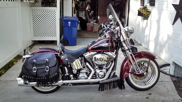 Immaculate Heritage Springer with numerous upgrades. leather. chrome. bags. clock and windshield. Rear seat and sissy bar included. Kept covered in a garage with a built in trickle charger. Dust cover and trickle charger included. Payment by certified check. Shipping costs paid by the purchaser.