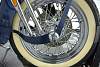 THE BIKE HAS A SMALL IMPRESSION AND TOUCHUPS ON THE REAR FENDER AND SMALL TOUCHUPS ON THE TANK AND FRONT FENDER. THE CHROME AND ALUMINUM ARE IN GOOD CONDITION WITH THE EXCEPTION OF SOME FLAKING ON THE TRANSMISSION COVER AND SMALL IMPRESSION ON THE HEAT SHIELD. THE FRONT TIRE HAS GOOD TREAD LEFT ON IT AND THE REAR TIRE WILL BE REPLACED WHEN WE SERVICE THE BIKE.