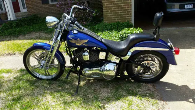 98 FXSTS Springer. Fatboy rear fender, anks stretched, ront fender lowered & skirted.