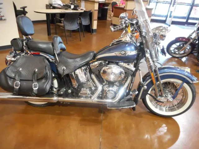 THIS IS A 2003 HERITAGE SPRINGER SOFTAIL GUNMETAL PEARL. THE BIKE WAS TAKEN IN ON TRADE AND NO SERVICE WORK HAS BEEN DONE. THE BIKE HAS 78,062 MILES ON IT AND RUNS GREAT. TIRES WILL NEED TO BE REPLACED SOON. FRONT WHEEL HAS RUST ON SPOKES. CAST WHEEL ON REAR. HAS A WINDSHIELD. MUD FLAP ON FRONT FENDER. SADDLEBAGS IN FAIR CONDITION. SMALL BAG BEHIND SISSY BAR. TRUE DUAL PIPES. DIVER'S BACKREST AND DETACHABLE PASSENGER BACKREST.