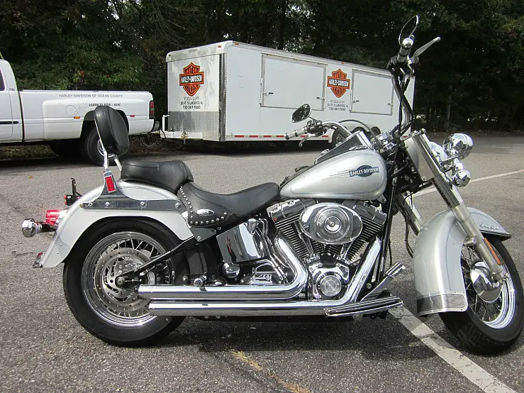 Harley Davidson SOFTAIL HERITAGE in Harley's Brilliant Silver! This is a nice bike. that has only 28. 49 miles on it. which is about 3000 miles a year - below the average for a bike from that year. The styling of this bike hasn't changed throughout the years. and it's kept the same look and feel from the original. which first made its appearance in 1986!! When something is right - there is no need to make major changes. This bike has the addition of the Vance & Hines Big Shot Exhaust. with Harley's Stage One and Breather. Just a nice bike to have. especially for the money!