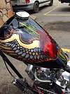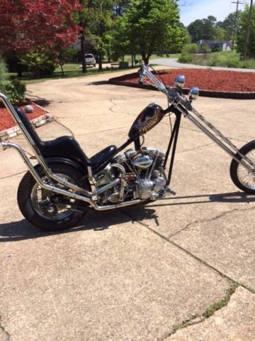 1969 Harley-Davidson Custom Vintage Chopper - the REAL DEAL. Not for "wannabes". This bike was originally built in the 1970's with many vintage parts from that era. The bike was re-built in California a couple of years ago with complete rebuild of the motor and transmission. Bike is titled as a 1969 Harley-Davidson but has a CA vin number because of the custom build. The motor is a 74 cubic inch original HD with the exception of STD cases. The transmission is a later model 4-speed HD. The bike has a vintage frame and front-end (I was told they are Denver's Chopper builds). Newly upholstered king/queen seat, ustom handle bars, vintage mousetrap HD clutch, cool custom trumpet pipes that sound awesome, ear banana brake, o front brake, intage chopper tank, nd many other cool parts. New custom paint on tank that is unique. The bike leaks no oil, tarts great (kick only, nd handles perfectly. Serious inquiries only. Thanks.