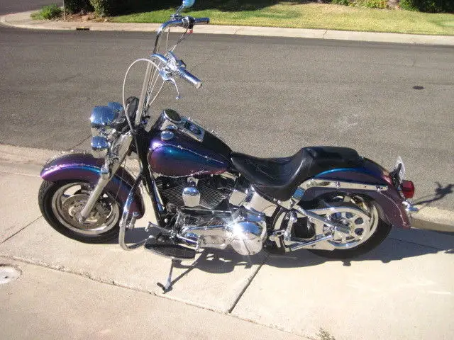HARLEY DAVIDSON, 2002 heritage soft tail total custom, 95" kit [motor is strong and fast] 5 speed tranz. Dyno- jet power commander, lots of chrome, custom paint, thunder-header pipes, 16" apes, 2 seat, sissy bar, adjustable bitch pegs, hwy. pegs, windshield, good tires, custom wheels, lowered 1 1/2", all round great ride. only 66k miles, THIS BIKE RUNS GREAT ---- COUSTOM PICK UP ONLT ---