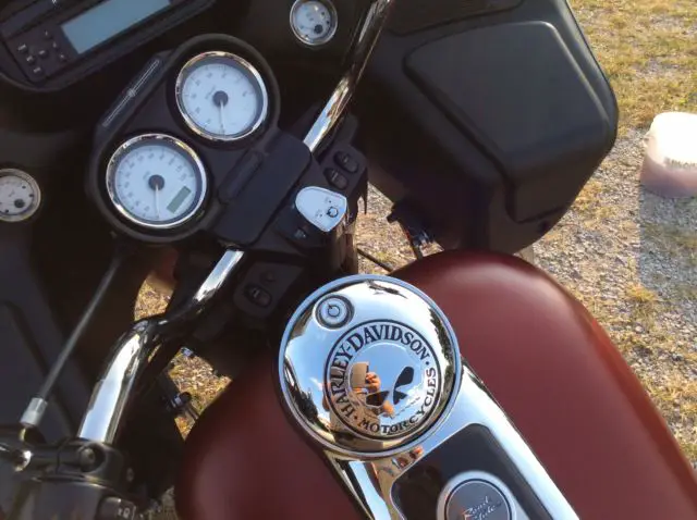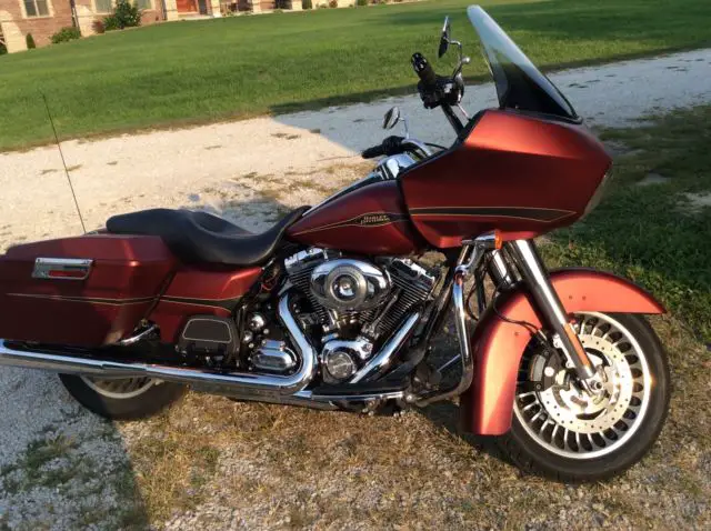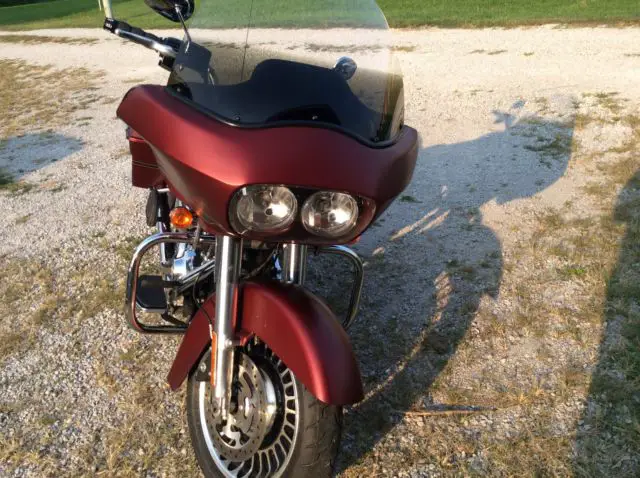 Beautiful flat crimson red denim paint. Kuryakyn strobe or solid adjustable light kit, BS brakes, point docking hardware, C component pipes, uner and matching hand grips. Just serviced, nd new Dunlop Elite tires with under 500 miles on them. Kicks stand side saddle bag has small scratch, ot noticeable, nd will include touch up paint. Security and both key fobs. Rides perfect.Feel free to ask questions....I would ride this bike anywhere, elling because I bought a new Ultra Classic.....Thanks for looking....$300 non refundable deposit...full payment in 7 days...it will have to be paid off at a local St. Louis area credit union.....The red denim paint is a rare factory color that was discontinued in 2009, ery pretty bike.