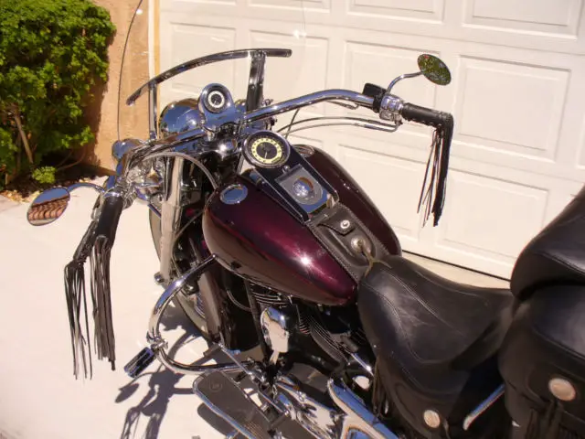 For sale is this 2005 Softail Deluxe FLSTNwith lots of accessories. Vance Hines true dual fishtails, uick release windshield and tour bag, each bars, andle bar mounted tachometer, hrome highway bars, addle bags with matching concho's, hrome belt cover, hrome rear sprocket cover, uick release back rest, dditional windshield and rear seats. many other accessories to go with. Seller is relocating and must sell !! About due for a rear tire.