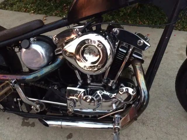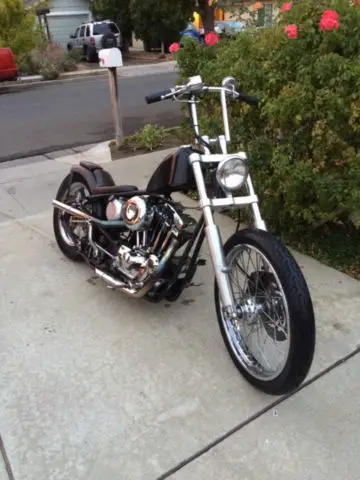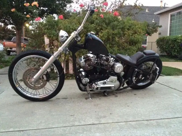 Titled as a 1975 Harley Davidson, as a 1974 HD sportster "ironhead" motor with VIN also appearing on title. The frame is a true rigid frame of unknown origin. It is molded, nd straight. Goes down road with no hands. Frame has 34-36 degree rake. Front end is a late model HD wide glide with billet triple trees. Lower legs are set up to run dual discs. It currently has a single, ate model 2002 and up caliper with 11.5" rotor, 1" front wheel w/great tread. Rear wheel is a 16", lso running late model 2002 and up caliper, 1.5 rotor and matching master cylinder. Tire has equally great tread. Motor is 1974, 000cc with about 8000mi. Itstarted as abrand new lower end, op end, lutch, ranny. It has a Dyna 2000i electronic ignition, &S super E carb, yna coil, ild cams, olid lifters, nd if memory serves me, think .020"over bore. it has some nice chrome parts which also include the heads. Yes, he heads are chrome. They have ran great here in Norcal year round. Handle bars are custom made. Fashioned after a set of Biltwell window bars, hese were made 11" tall and are23" wide.This bike has been very dependable, nd is really fast. front cobra seat is starting to show some cracking. rear P pad, nd foot pegs. It is kick only, nd of course, uicide / jockey shift 4 speed. This bike sits on the low side, ooks cool as hell. It will make you look cool too, ven if you aren't.. HAHA. Once you know it, t will usually start in 1-5 kicks. That will greatly depend on how much of a hurry you are in. Seriously, on't ask, ut it is true. Real hurry, nd it will give you some grief. No hurry, tart right up. You can text me at 6509240317 for more detail. If you want to call, lease do so during reasonable west coast hours. For sale locally, eserve right to cancel early