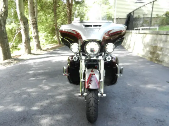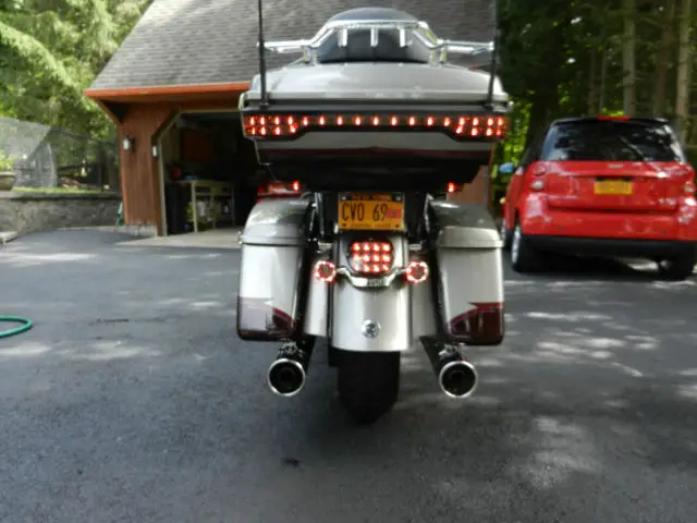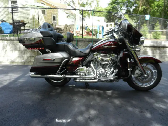 2015 Harley Davidson CVO Limited with all the Project RUSHMORE options. Two-tone SILVER WITH BURGUNDY with high-impact hand painted graphics. Twin-Cooled (liquid cooled) Twin Cam 110 Screaming Eagle (1802cc)....
