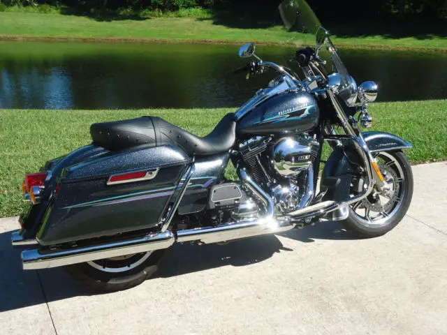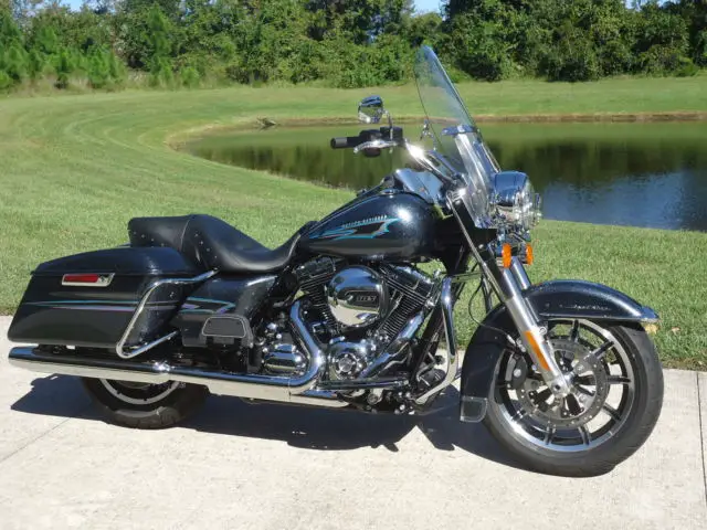 Thanks for checking out this incredible 15 Roadking with only 22 miles. As you would expect the bike is perfect in every way. This beautiful machine was just traded for a smaller bike. The "Black Magic" paint is a custom color that really goes off in the sunlight and has some really cool graphics. Not even a bug mark in the paint or anywhere on this beautiful machine. The Roadkings touring platform allows for effortless long haul riding without the clutter of a fairing. You can remove the detachable windshield if you really want to get in the wind. This bike is equipt with the optional abs brakes. This awesome machine runs and drives as good as it looks and needs nothing but a new owner. The 103" twin cam motor has plenty of power and the six speed tranny is silkey smooth. You can buy with total confidence as there is almost two years of remaining factory warranty. Title is on the way from Harley Financial and will be available in a week or two. Local buyers just add tax and tag and you can ride out. No additional doc or dealer fees. Financing available for "Florida" buyers and LOCAL MOTORCYCLE TRADES will be considered.If you are out of the area I can assist with quality shipping to most US locations. We sell worldwide but I don't handle overseas shipping. We have been selling showroom quality vehicles for 26 years and have a 100% ebay rating. Please review our customer feedback and see what our clients have to say. This is an incredible opportunity to purchase a basically new machine and save big money in the process. This is a very special bike that will sell fast so don't miss out. If you have questions or would like to own the Roadking call Steve Shay at (386)689-8900. Thanks and ride safe!