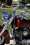 The removable windshield has a special 100th Anniversary emblemed windshield bag. The original saddle bags are in great condition, ave a stiffener kit installed and have a quick release mounting system. It uses a second barrel key and takes only seconds to remove or replace. I have the original standard Softail seat which is in great condition. I replaced it in 2011 with a Mustang Solo highway seat with an adjustable back rest for a trip across country. From California to New York to Sturgis and home; 6900 miles in a couple of weeks. The Mustang seat was far better than the stock seat would have been. There is a chrome Leader Brand cell phone moun, PS mount and 12volt accessory socket installed. The two mounts are on the bars, nd the 12volt socket is on the engine guard. The engine guard is by Lindby and features flush fitting, olding highway pegs. All cables have been replaced, he two throttle cables were just replaced a couple of weeks ago, ll looking better than the stock cables. NOTE: the custom horn cover will be replaced by the factory plain chrome cover