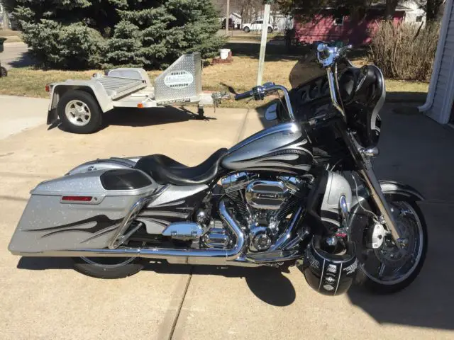 You are bidding on a 2015 CVO Street Glide with 7900 miles on it and is in Like New condition. The bike has approximately $6000 in accessories on it which includes 12.5" Wild Ones Handlebars, ull Exhaust with full Dyno Tune (Fullsac headpipe w/CFR Mufflers/Screamin Eagle Race Tuner) saddlebag guards, nd CVO Passenger Floorboards.The bike is in absolute mint condition. My loss is your gain. The Bike looks like it just came off the showroom floor and has been broken in and serviced perfectly. The bike was serviced at 1,000, 500, 000, nd 8,700 mile marks at a Harley Dealership. If you have any questions let me know.