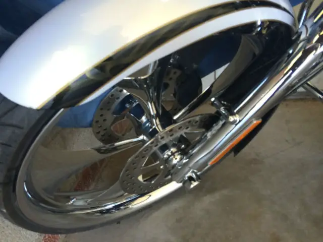 26in front wheel 25mm axleHigh roller twin rotor conversionRaked triple tree 9 degreeRaked fairingCustom 1 off front "thicky" fender14in monkey bar apesPlatinum air suspensionCustom Corbin seatI do have the rear seat and back rest!!Custom audio system with speakers in the bags