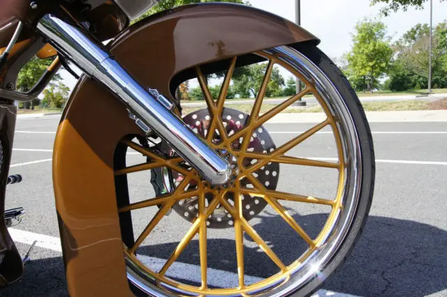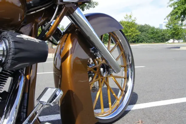 - 103 MOTOR WITH STAGE 4 KIT AND TUNER (DEALER INSTALLED) - 26 METALSPORT WHEEL WITH CUSTOM PAINT AND STRIPING- CUSTOM PAINT AND LEATHER SEAT - CUSTOM MOLDING ON FAIRING AND SINISTER BAGS AND FENDERS - KENWOOD HEAD UNIT AND AMP WITH 8" IN EACH BAG AND UPGRADED MIDS UPFRONT(YOU CAN HEAR IT CRISP AT 80MPH) - AIR RIDE WITH REMOTE INFLATE AND DEFLATE - CARLINI PISSED APES HANDLEBARS (14 IN) - AFTERMARKET ALARM - HID DUAL LOW AND HIGH BEAM - DIAMOND (SHOW CUT) HEADS I AM SELLING BECAUSE I AM READY FOR THE NEXT PROJECT AND I PURCHASED THE BIKE NEW. IF YOU REPLY AND HAVE QUESTIONS I WILL GET BACK TO YOU ASAP.Also published at eBay.com