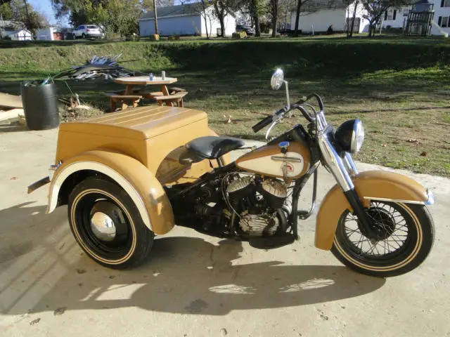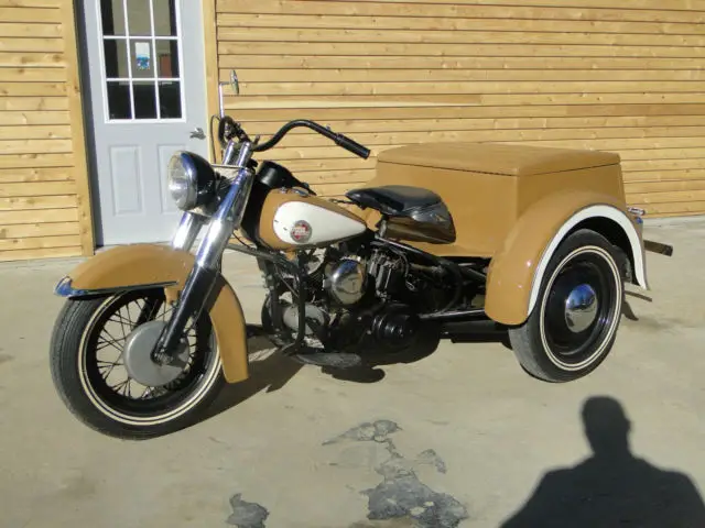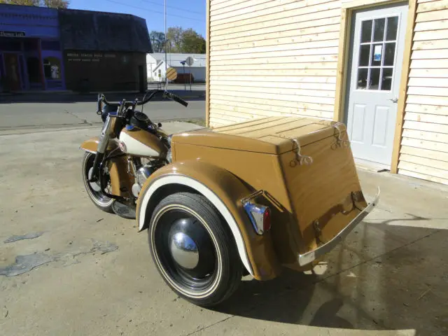UP FOR AUCTION! 1958 HARLEY DAVIDSON TRIKE!!! THIS IS AN ORIGINAL AUTO SHOP TRIKE THAT HAS 130 MILES ON IT SINCE RESTORATION! BIKE RUNS RIDES AND STARTS LIKE A NEW ONE! THE BOK IS ORIGINAL TO THE BIKE AND SO ARE THE TANKS AND FRONT FENDERS! HAS THE ORIGINAL HYRDAGLIDE FRONT END WITH THE SUICIDE SHIFT AND FOOT CLUTCH! EVERYTHING APPEARS TO BE ORIGINAL TO THE BIKE AND IN WORKING ORDER! HAS THE ORIGINAL STYLE GOODYEAR TIRES ALL THE WAY AROUND! THE TRUNK COMPARTMENT IS CLEAN AND THE BOLT HOLES FOR THE TRUNK LID HANDLES HAVE BEEN COVERED BUT CAN BE UNCOVERED REAL EASY AND NEW TRUNK LID HANDLES COME WITH THE SALE OF THE TRIKE! GREAT BIKE THAT IS A BLAST TO RIDE AND IS OF FULLY RESTORED QUALITY!!!! WONT FIND NONE NICER! THANKS AND GOOD LUCK BIDDING PLEASE FEEL FREE TO CALL 913 796 2221 WITH ANY QUESTIONS OR CONCERNS YOU MAY HAVE!