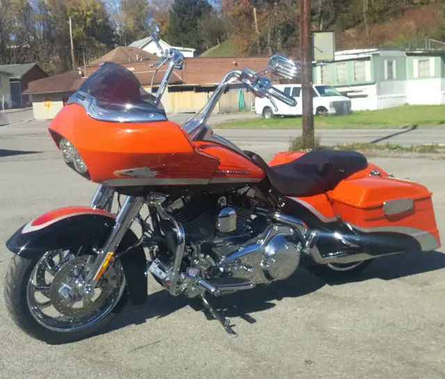 The seller bought this bike in Spring 2015 from the owner of Triple S Harley-Davidson in Morgantown, V. This was his personal bike. All customizing was done by the dealer. Seller put approximately 2,000 miles on it and has always been garaged. This bike looks better than new! It had just been serviced with two new tires and all new fluids when he purchased it. Seller has purchased a two year extended warranty that he believes is transferrable. Bike has over $40,000 invested. He is selling the bike for payoff of $30,850 through Harley Financial. Harley Financial will finance payoff with new buyer if desired. YOU WILL NOT BE DISAPPOINTED! Accessories/Customization: 6 Speed, 6" Ape Hangers with heated grips, BS brakes, ruise control, teel braided cables, UB 7 true duals, aymaker headlights, range LED engine/frame light kit, atching tour pack with locks, ecurity system, M-FM CD with Hot Tunes stereo and speakers, ustom touring seat has inlay of orange with HD patch. Also comes with HD low profile seat that tires you that Street Glide look. All bags and tour pack are quick release, ndoor CVO cover. Battery tender and motorcycle jack included. I am listing this bike for a friend, o please direct all questions to, ike Harbert at 304-838-2455Buyer is responsible for the arrangement of shipping/pick up arrangements, s well as the $500 deposit 3 days after auction end.Also published at eBay.com