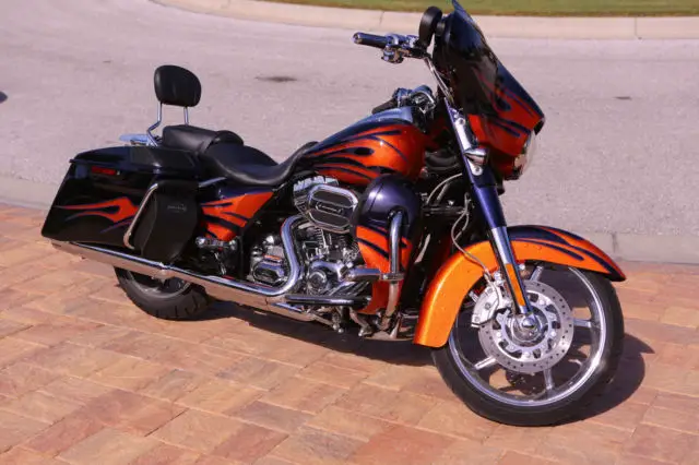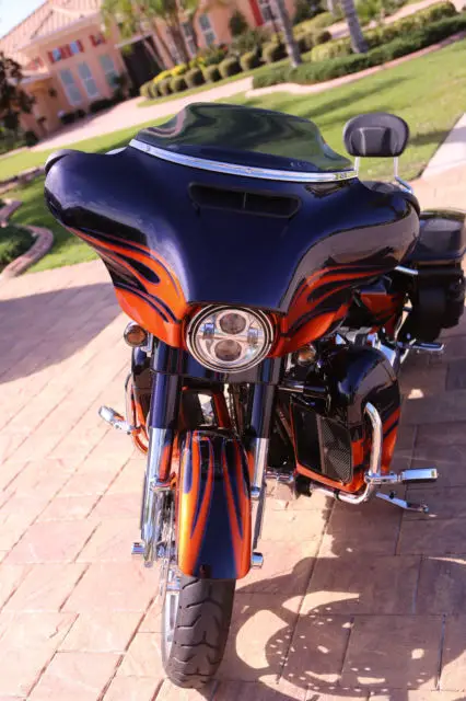 IN PERFECT CONDITION. NO SCRATCHES OR WEAR.APROX. $700.00 IN ACCESSORIES ADDED.ITS DONE IN THE ULTRA VIOLET BLUE AND LAVA CUSTOM PAINT BY " GUNSLINGER."IT HAS THE NEW WATER COOLED EXHAUST MOTOR, SPEED TRANSMISSIONIT HAS THE BOOM! BOX AUDIO SYSTEM WHICH PRODUCES GREAT SOUND AND HAS ALL THE EXTRA FEATURES LIKE XM SATELLITE RADIO, LUETOOTH, ND OF COUSE THE LATEST NAVIGATION SYSTEM. WITH VOICE RECOGNITIONTHE BIKE HAS CRUISE CONTROL.IT HAS THE `STATE OF THE ART SMART SECURITY SYSTEMTHIS BIKE HAS ALL THE EXTRAS THAT HARLEY DAVIDSON PUTS ONTO THEIR CVO CUSTOM BIKES. THE OWNER IS SELLING BECAUSE OF HEALTH REASONS.