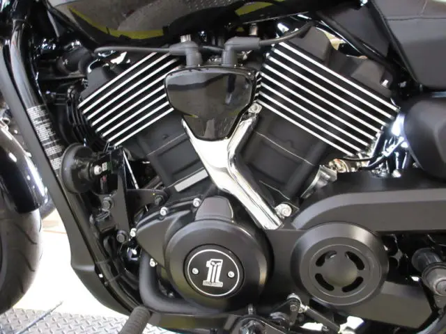All-New Liquid-Cooled Revolution X EngineUrban riding puts its own set of demands on a motorcycle engine. The city grid is no easy-riding, ide open, inding road with beautiful vistas as far as the eye can see. It???s a moving mass of stop and go sheet metal with heat waves rising off the pavement on most days. You need an engine built to conquer it. The new Revolution X engine is 749 cubic centimeters of authentic, iquid-cooled, ustom Harley-Davidson motorcycle built for urban streets. Liquid cooling means it maintains temperature and performance. Count on smooth response to the progressive throttle when you call on the Harley-Davidson Street 750 motorcycle to get you through any hole that opens up in front of you. But we didn???t just build this engine to get you from here to there. This is a Harley-Davidson engine. We built it to satisfy. 60 degree cylinders. 4 valves per head. Plenty of low-end torque. What it all means in laymen???s terms is that you can feel the strength and character of the engine at the RPM ranges you find yourself riding in most often on city streets. Get in the saddle, ire up the Revolution X engine, ut the bike into gear and go. You???ll understand.