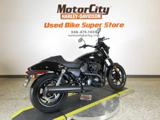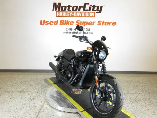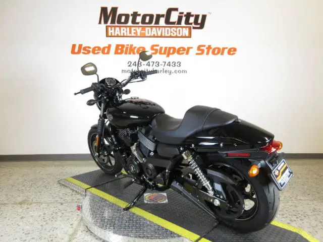 The Harley-Davidson Street 750 motorcycle is a 749cc liquid-cooled Harley-Davidson?® motorcycle built for urban riding. The Street 750 motorcycle features an all new, iquid-cooled Revolution X V-Twin engine made for excellent performance. Tight turns and fast moves on city streets are easy on the Street 750 urban motorcycle thanks to the easy lock-to-lock sweep of its handle bars, ight weight, ow 25.4-inch seat height and midmount controls. It also features a 59.5-inch wheelbase which also makes for easy handling on urban streets. Besides, t is built for urban riders with a specially tuned suspension and a skinny 17-inch front wheel designed especially to get urban riders over and around rough urban infrastructure. The Street 750 motorcycle with its 749cc blacked out liquid cooled Revolution X engine is a Dark Custom??? Harley-Davidson?® motorcycle with stripped down custom attitude and an aggressive blacked-out look. This 749cc liquid-cooled Harley-Davidson?® Dark Custom motorcycle is authentic, remium Harley-Davidson through and through. The 750cc engine and all-black two into one exhaust deliver authentic, oul-satisfying Harley-Davidson sound. The teardrop tank and fenders on the Street 750 motorcycle are real steel. The Street 750 motorcycle street custom machine has aggressive blacked out styling everywhere you look. There???s a black caf?© inspired speed screen, lack cast aluminum wheels, lack two into one exhaust, lack fork gaiters, lack pull back buckhorns. As an example of the premium Harley-Davidson?® features built into this urban motorcycle, heck out the new chrome tank medallion and the premium Harley-Davidson paint.
