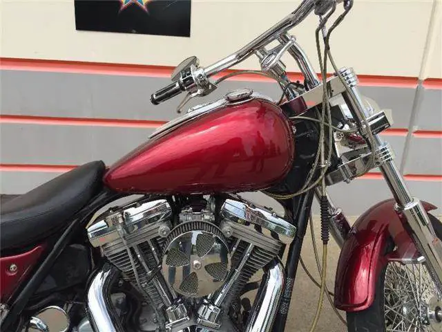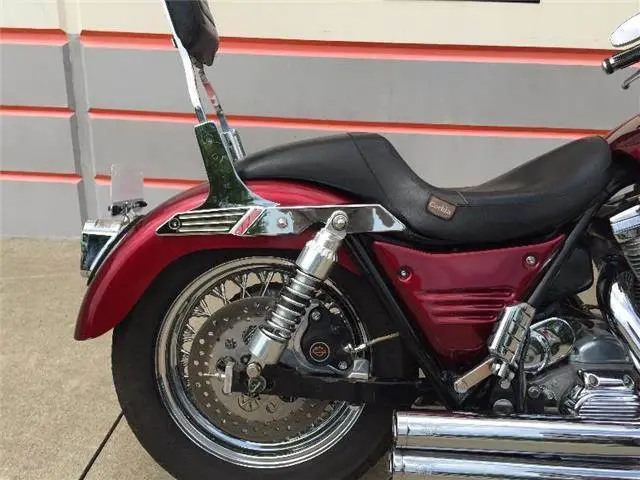 This Harley throw back is one of a kind and screams classic American muscle. With low miles and tons of chrome the FXR is sure to turn heads. The motor has been bumped up two engine sizes from the stock 80ci to a 95ci. A chain drive has been added for better torque response at the rear wheel and the Vance and Hines short shot exhaust gives this hot rod a mean rumble.
