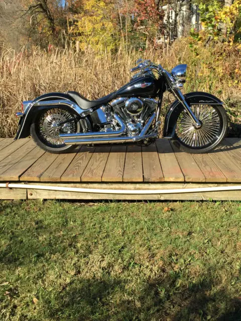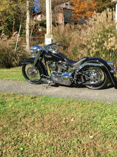 Super clean and award winning one-off Softail. This is a 2012 HD Deluxe 103ci fuel injected 6 speed non-ABS bike; a show bike built to ride. All chrome parts are HD, ot after-market. The rear fender is a CVO convertible fender with a 8" stretch. Rear fender struts and light bar are CVO convertible as well. The rear wheel and tire were swapped out to a 200 mm tire set up. DNA 18X5.5 mammoth 52 spoke rear wheel 21X 2.15 front. CVO Wheel spacers & axle cover kits. HD chrome calipers & rotors. Bike has been lowered 2.5" frt and rear. CVO Handle bars and risers. Paint is factory except the rear fender which was painted after stretch and looks factory as well. The list of chrome parts and custom works goes on and on. I've invested over 10k in parts alone. I've owned this bike since new, o if you have any specific question pls just ask. The title is clear with NO liens. About 1,800 total miles on bike. $24,999.00