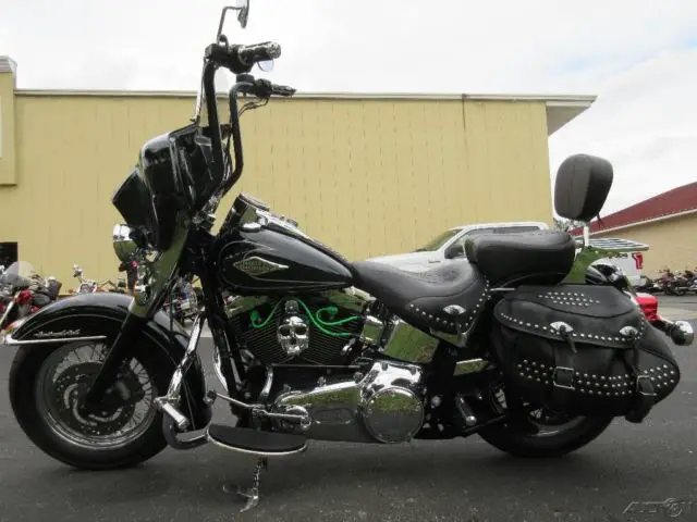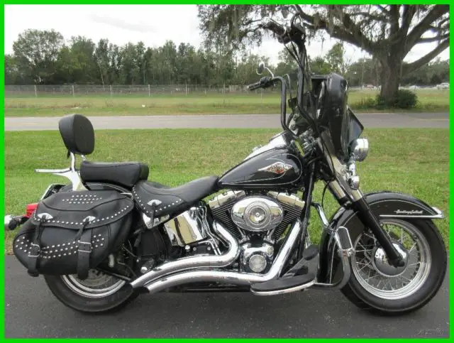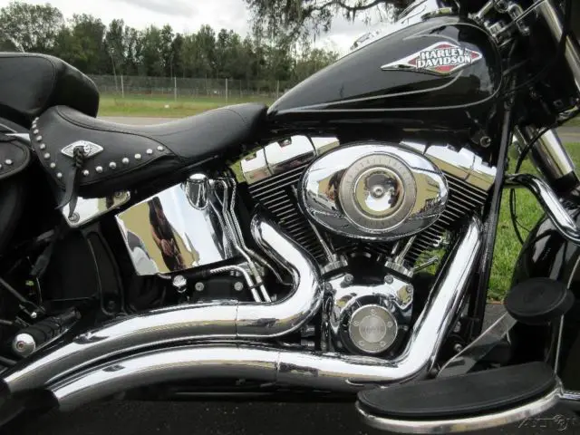 BLACKED OUT FRONT END, PES, ETACH FARING WITH STEREO, NGINE GUARD, ANCE AND HINES BIG RADIUS, UGGAGE RACK, AY DOWN TAG BRACKET AND MORE!! SWEET BIKE!! The 2011 Harley-Davidson Heritage Softail Classic motorcycle FLSTC is fully equipped with modern touring capabilities and even has a removable motorcycle windshield. Enjoy mile after mile with a large capacity five-gallon Softail fuel tank. The Softail tank is also dripping with authentic Harley-Davidson style. The Harley FLSTC has full length rider footboards with rubber vibration isolation for added comfort. Learn more about the style and functional components found on this bike.