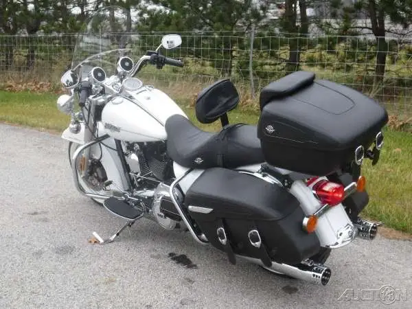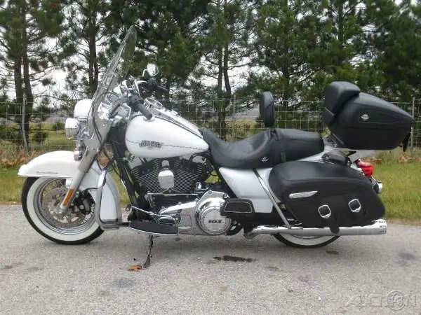 This sweet Road King Classic is just full of features ... almost too many to list. Standard quick-detach windshield, BS, ecurity, uick-detach Tour Pak, ound jack & speakers, uick-detach backrest and more. The bike is powered by the rubber mounted Twin Cam 103 motorcycle engine that provides the power you need for passing, ill-climbing and performance when carrying luggage and/or a passenger. An important feature of touring motorcycles is the saddlebags. The Harley Road King Classic saddlebags are leather-wrapped injection molded hard saddle bags that maintain their shape over time. This Harley touring and cruiser motorcycle all in one also has an air adjustable touring rear suspension, iving the choice for a variety of riding feels. You just can't go wrong with this classic King of the Road!