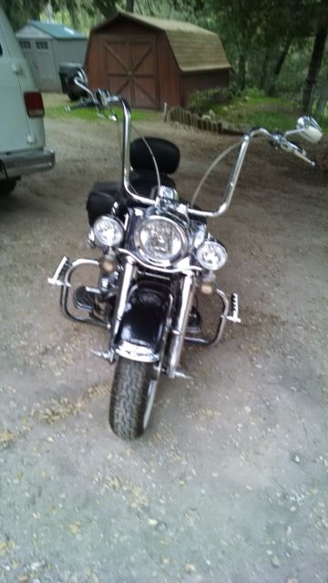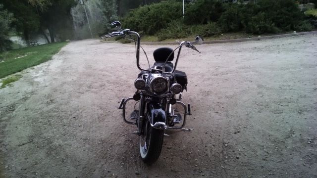 99 Road King New handle bars new tires new sissy bar lots of chrome Vance and Hines fish tail pipes Excellent condition Also comes with a new Element leather jacket size XL