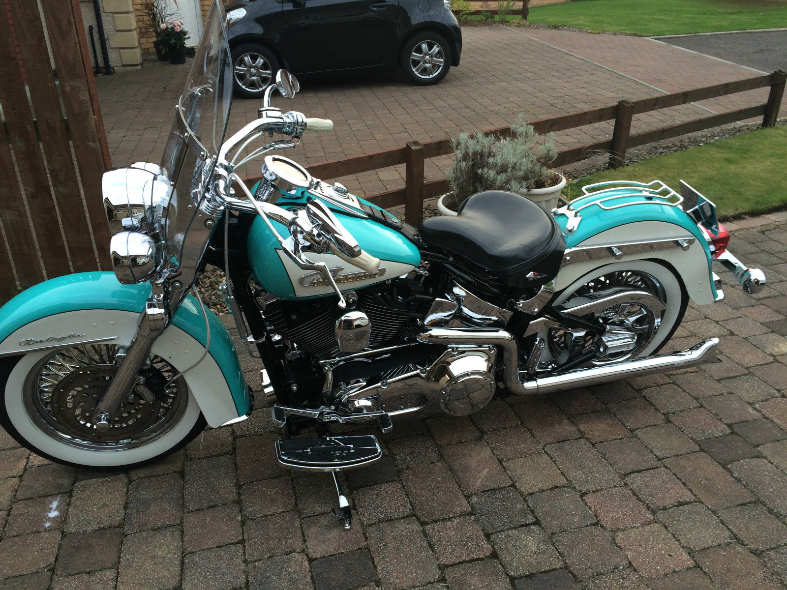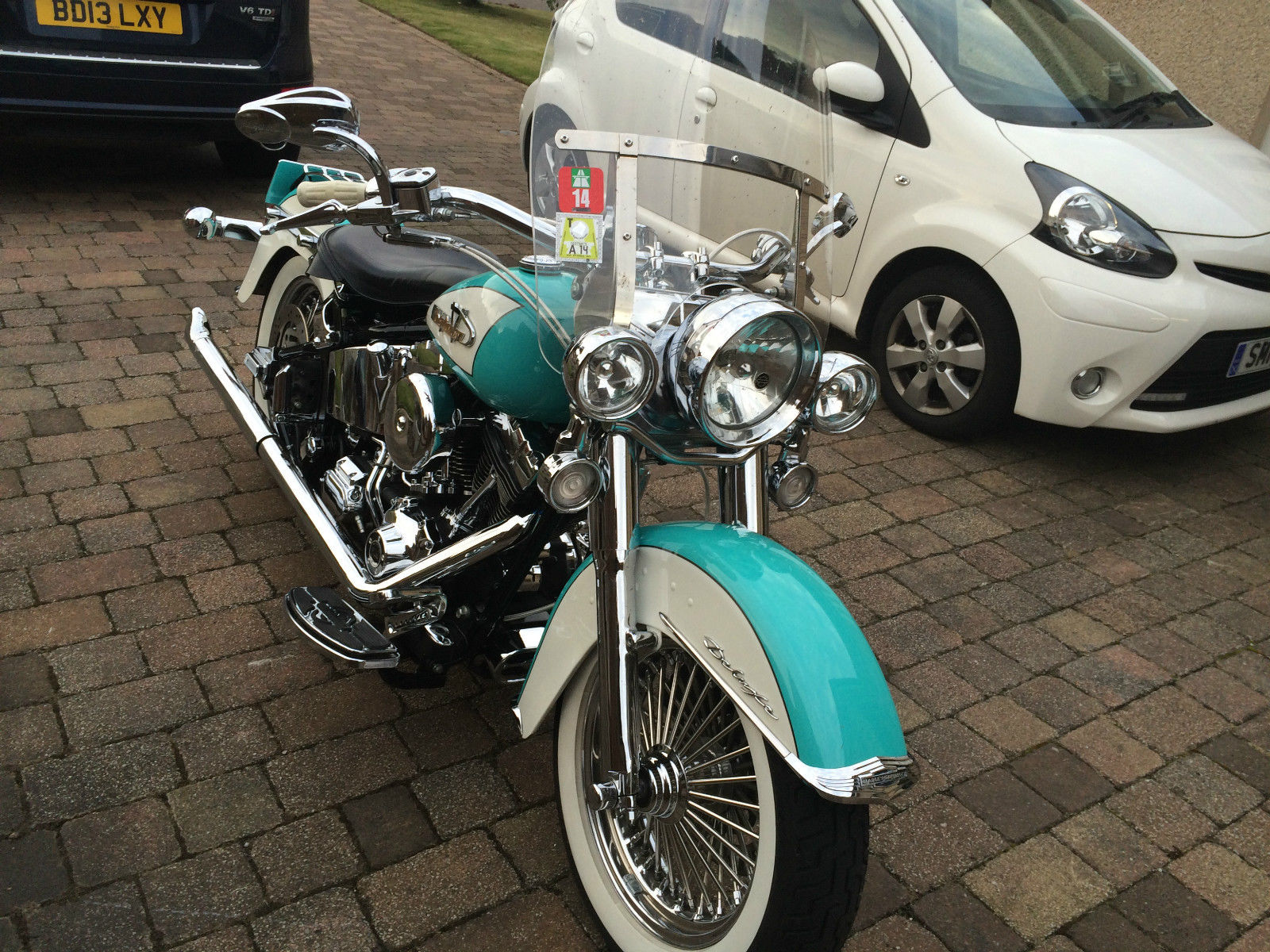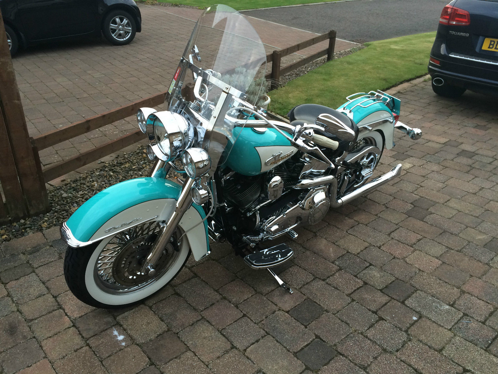 This is a one off retro bike with the following:. Big Daddy Wheels. Front Chrome End. Chrome Switch Gear. Beach Bars. Deluxe Solo Seat. New front and Rear Dunlop Tyres. Serviced 4 Weeks ago. New Exhaust System with Fish Tails. and loads more to mention. but receipts for over £9K. Only selling as want a CVO Street Glide or CVO Electra Glide. P/X Considered. nbsp;Next MOT due 19/05/2015. Full service history. Low seat height. Luggage rack. Touring screen.