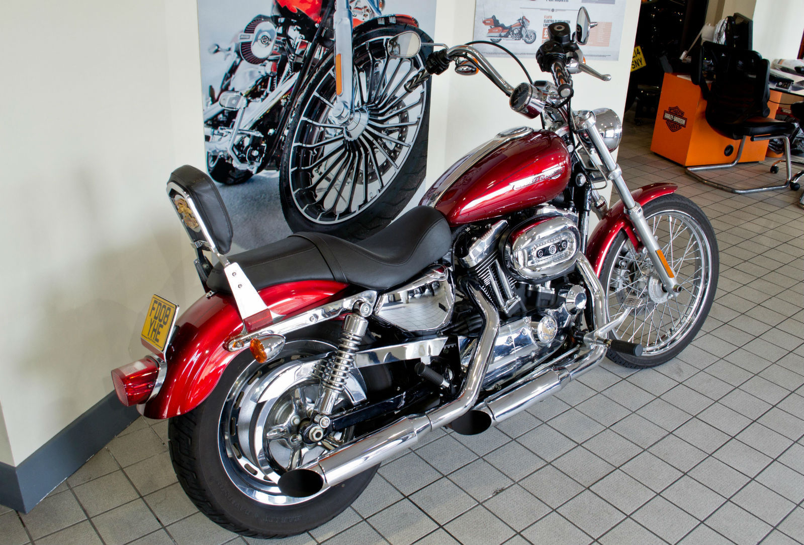 2008 HARLEY-DAVIDSON XL1200C SPORTSTER CUSTOM. etallic Red. Warranty. Alarm and Immobiliser. Slip-On Performance Mufflers. Backrest and Pad. Layback Plate Holder. Braided Brake Line. Chrome Battery Cover. Chrome Oil Tank Cover. Chrome Belt Guard. Chrome Rear Pulley Cover. Chrome Grips. Bar & Shield Air Filter Cover Inlay. Great looking bike in a fantastic candy red sunglow. We will be giving the bike a 5K service before it goes to its new keeper. Bike/car/caravan or Van taken in part exchange. Call for same day valuation. . One of over 100 new & used Harley Davidson's. Open 7 Days a week. . £6. 95