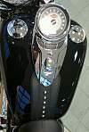 GENERALYear:2012Manufacturer:Harley-Davidson®Model Name:FLSTC Heritage Softail®Trim Name:ClassicGeneric Type (Primary):CruiserDIMENSIONSLength:94.5 in.Seat Height, aden:25.5 in.Seat Height, nladen:27.1 in.Ground Clearance:5.1 in.Rake (steering head) (deg):31Trail:5.8 in.Wheelbase:64.5 in.Tires, ront Specification:MT90B16 72HTires, ear Specification:150/80B16 71HFuel Capacity:5 gal.Oil Capacity (w/filter):3.5 qt.Weight, s Shipped:730 lb.Weight, n Running Order:761 lb.Luggage Capacity -Volume:Luggage Capacity -Weight:ENGINEEngine:Air-cooled, win Cam 103B™Bore:3.875 in.Stroke:4.38 in.Displacement:103 cu inCompression Ratio:9.6:1Fuel System:Electronic Sequential Port Fuel Injection (ESPFI)DRIVETRAINPrimary Drive:Chain, 4/46 ratioGear Ratios (overall) 1st:9.311Gear Ratios (overall) 2nd:6.454Gear Ratios (overall) 3rd:4.793Gear Ratios (overall) 4th:3.882Gear Ratios (overall) 5th:3.307Gear Ratios (overall) 6th:2.79CHASSISExhaust:Chrome, taggered shorty exhaust with dual mufflersWheel Type, ptional Style:Chrome, ubeless Profile Laced AluminumWheel Type, ront:Steel LacedWheels Type, ear:Steel LacedBrakes, aliper Type:4-piston front and 2-piston rearParking Brake:PERFORMANCEEngine Torque Testing Method:J1349Engine Torque:96.9 ft-lbEngine Torque (rpm):3,000Lean Angle, ight (deg.):24.4Lean Angle, eft (deg.):25.9Fuel Economy: Combined City/Hwy:42 mpgELECTRICGauges:Tank-mounted electronic speedometer with odometer, ime-of-day clock on odometer, ual tripmeter, PM/gear display, uel gauge with low fuel warning light and countdown feature, ow oil pressure indicator light, ngine diagnostics readout, ED indicator lights, -speed indicator light
