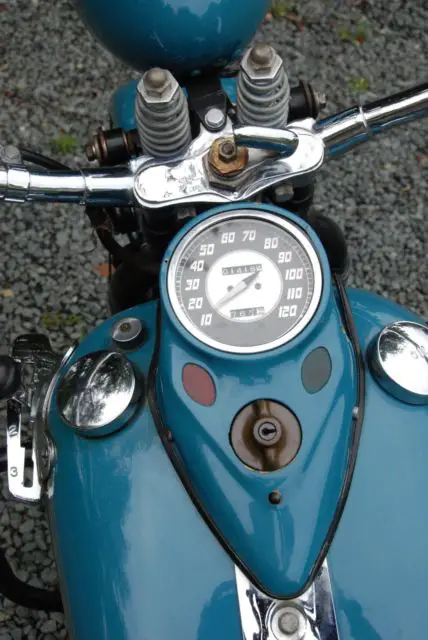 Rare Canadian military bike in civilian colors with 3 speed on the tank. Starts easily, uns great.This bike can be yours in time for Daytona Bike Week. Speedometer shows 1418 miles but true miles are unknown.