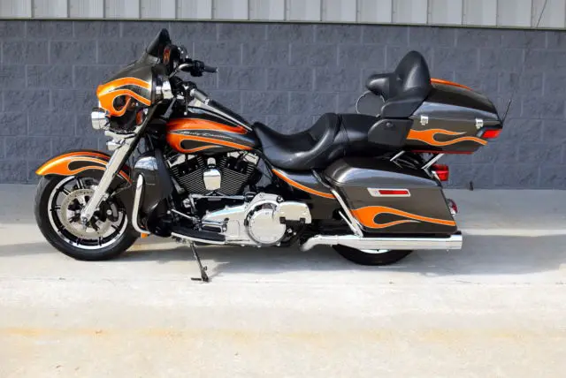 BIKE DESCRIPTIONANOTHER AMAZING STUNNING BIKE OFFERED FOR SALE BY THE WORLD FAMOUS BIKE EXCHANGE! THIS FLAWLESS 2014 HARLEY DAVIDSON GRAPHITE GREY WITH RAISED TANGERINE FLAMES FUEL INJECTED FLHTCU ULTRA CLASSIC WITH ONLY 10,955 MILES. THE BIKE HAS NEVER BEEN WRECKED OR LAID DOWN AND HAS ONLY 5 MILES ON THE CUSTOM BUILD!! IT HAS OVER $10,000.00 IN CUSTOM ACCESSORIES WE JUST FINISHED, TS THE CREAM OF THE CROP WHEN IT COMES TO A ULTRA. THIS BIKE IS SURE TO TURN SOME HEADS! WE SPECIALIZE IN PROVIDING OUR CUSTOMERS WITH ONE OF A KIND CUSTOM HARLEYS ALONG WITH THE SERVICE AND RESPECT THATTHEY DESERVE! THE LIST OF EXTRAS ON THIS BIKE IS STAGGERING! THOUSANDS AND THOUSANDS HAVE BEEN DROPPED ON THIS LIMITED TO BRING ITS CURRENT LEVEL. BELOW IS A LIST OF THE EXTRAS INSTALLED: