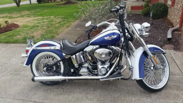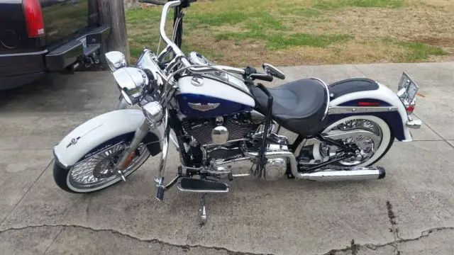 I'm selling a 2006 Custom Harley Softail Deluxe thats in very goodcondition. Engine is stock runs strong its very clean with lots of extra it heads new21 inch fat daddy rim in the front new16 inch fat daddy rimin the rear with duals Rinehart pipes and fat daddy handle bars and lots of chrome. Heads new tires and brakes with new floating rooters front and backK& I air filter.Garage kept maintenance free ready to ride solo or with passenger seat that comes with it.