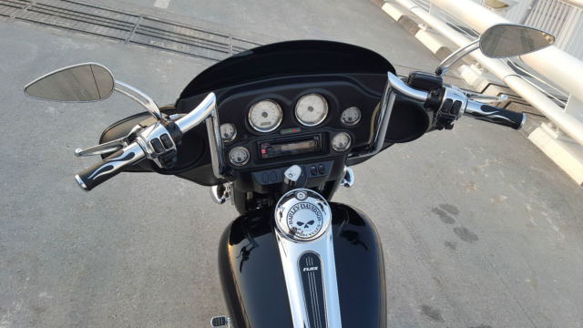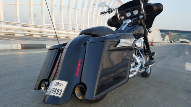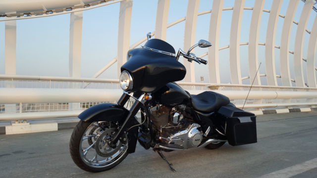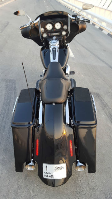 Harley Davidson street Glide 2012 fully black and chrome. full accessories as seen in the picture. customized by the master bagger in USA Paul yaffe. full sound system with 4 channel amplifier front and rear with 12 inch monkey handle bar new battery, ew tyre, ew front disk break with pads and 21 inch front wheel, xtended saddle bags with the rear fender LED stop lights.it got a salvage title with a very very minor accident on the front fender and has been fixed and doesn't affect the balance of the bike at all. THE BIKE IS AVAILABLE IN DUBAI
