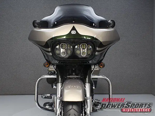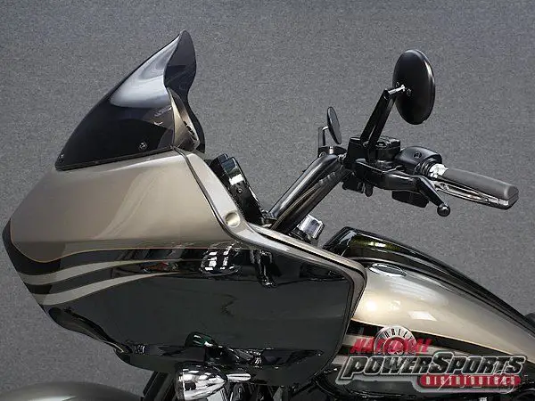 This Harley Road Glide Screamin' Eagle comes equipped with ABS, ruise control, n AM/FM/CD/WB/Aux 6-speaker audio system, creamin Eagle air intake, aymaker LED headlamp, moked windshield, igh-torque starter, ecurity system, nd HD Slipstream Collection controls. a 110 cu/in V-Twin engine with a 6-speed transmission, he Road Glide puts out 122 foot-pounds of torque at 3750rpm. It has a seat height of 27.4" and a dry weight of 853lbs.