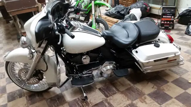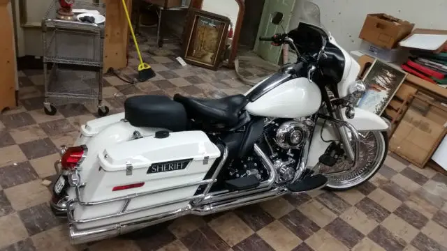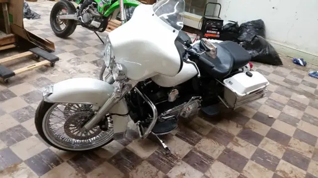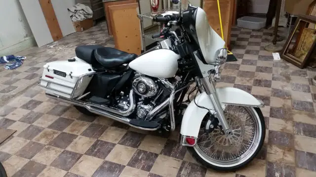 THIS BIKE IS IN OVERALL GREAT SHAPE. THERE IS A FEW MINOR CHIPS AND SCRATCHES THAT COME NATURAL WITH POLICE BIKES BUT NOTHING TO WORRY ABOUT.NEW VANCE AND HINES FULL EXHAUST 2-1 PRO PIPENEW VANCE AND HINES PROGRAMMERRENTHAL GRIPSKENWOOD STEREO WITH BLUETOOTH WITH KICKER 6.5'' SPEAKERS AND EXTERNAL WATERPROOF AMPHIGH FLOW INTAKELOWERING KIT IN REAR 2''21'' FRONT WIRE WHEEL WITH CHROME DUAL ROTORSMILLION COLOR LED LIGHTS WITH TWO CONTROLLERS TO FLASH RED AND BLUE LIKE THE POLICESISSY BAR WITH QUICK RELEASEHARLEY COVER8'' WIND SCREENCLEAR SIGNAL AND MARKER LENSESNEW TIRES FRONT AND REARMUSTANG REAR POLICE SEAT TO MATCH SPRINGER SEATLISCENSE PLATE BRACKET AND SIGNAL BAR SETUP REVERSEDPASSENGER FLOOR BOARDSQUICK RELEASE CUP HOLDERINCLUDES ALL ORIGINAL PARTS
