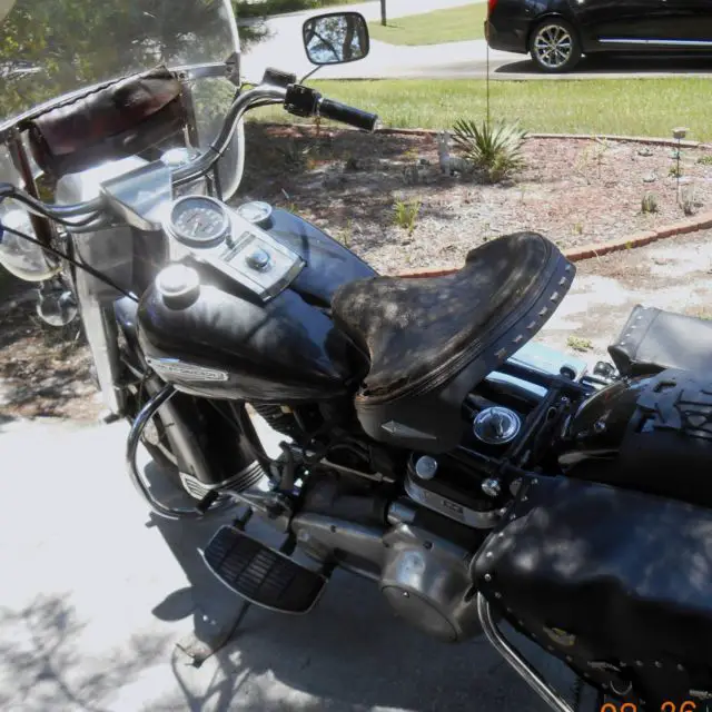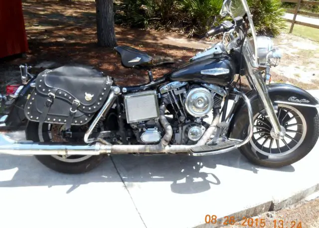 1973 FLH shovelhead, 3" numbers mathing motor frame title, spd. Sputhe [american made] Mikuni 42 carb, isc brakes front & rear 12, 00 mi . since motor redone with all the best parts Jims s&s andrews. lower legs on front end chromed, icely patina solo pogo seat. Cast wheels Buyer is responsible for shipping, 300.00 deposit upon winning bid, est in cash or certfied bank check [ prefer bank of America]